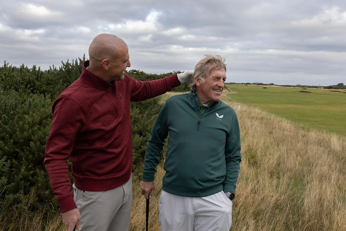 Sir Kenny Dalglish, footballer, with son Paul, Troon, 2024. © Jeremy Sutton-Hibbert.