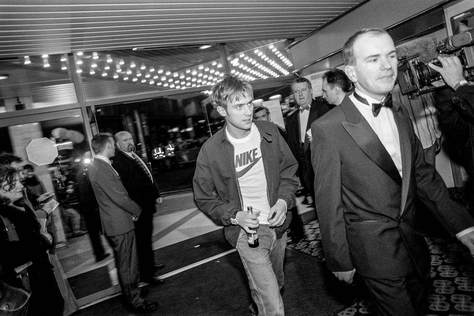 From the after party I remember the police line-up wall, I remembered Damon Albarn of Blur not being happy about being photographed with his then girlfriend Justine Frishmann of Elastica, What I didn’t remember about the evening and party was Angelina Jolie being there, as then girlfriend of Trainspotting actor Jonny Lee Miller. Perhaps I didn’t know who she was at the time. It’s funny what you find from looking at your negatives, the little moments in life that have dimmed in your memory.